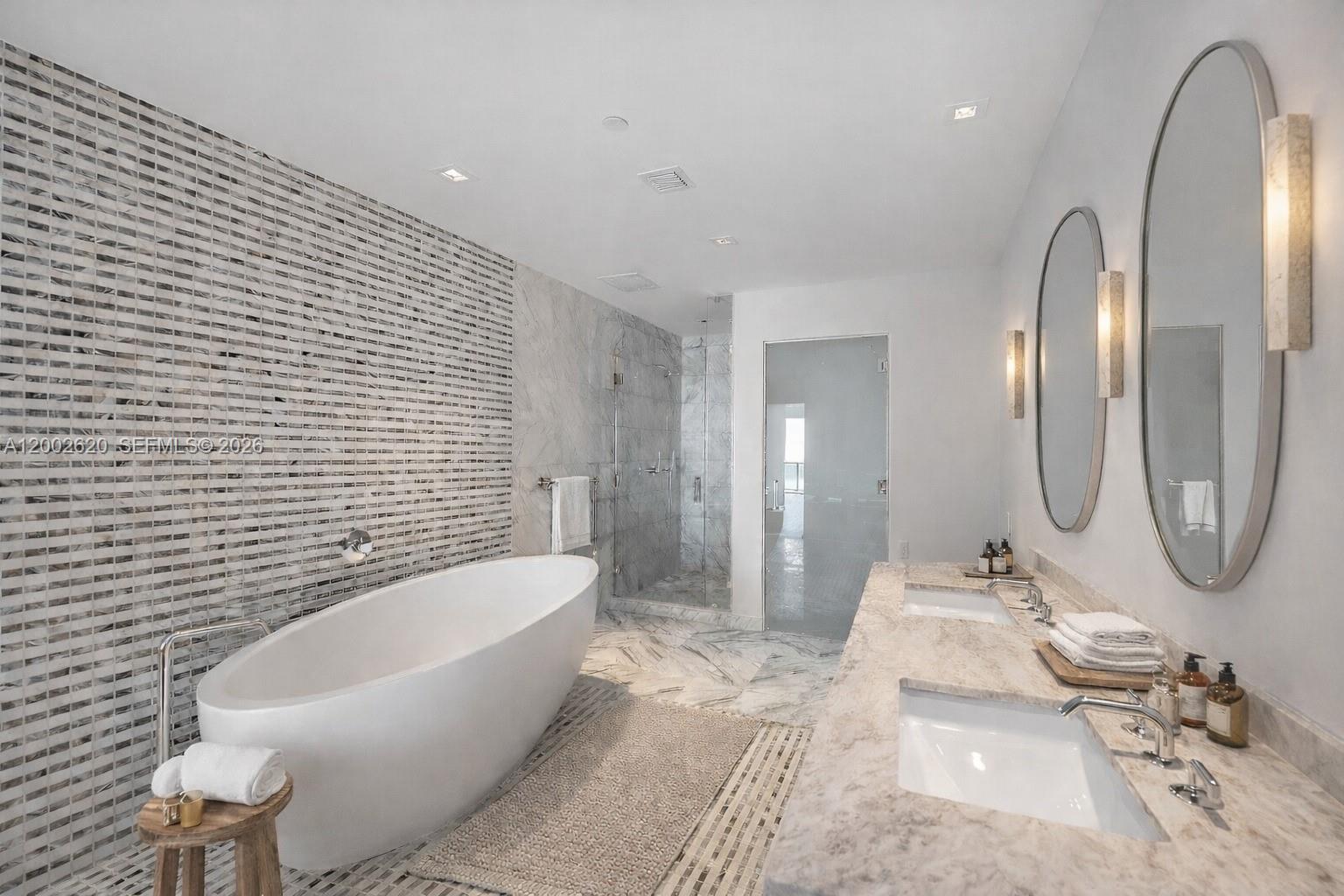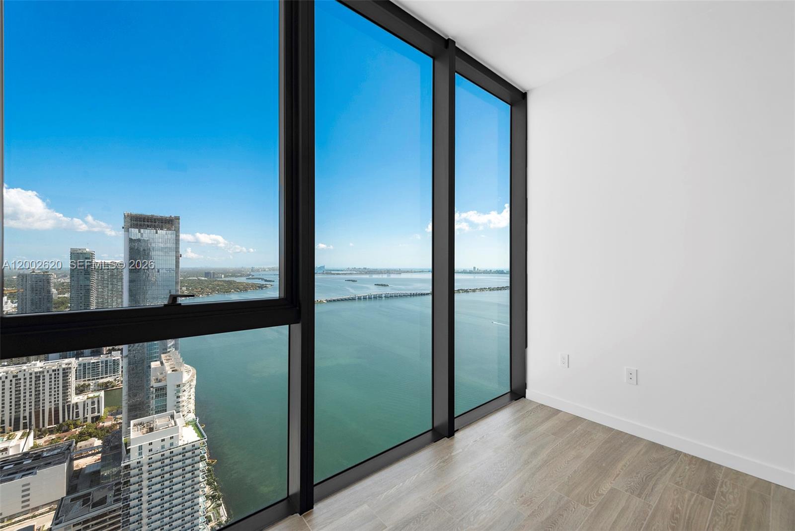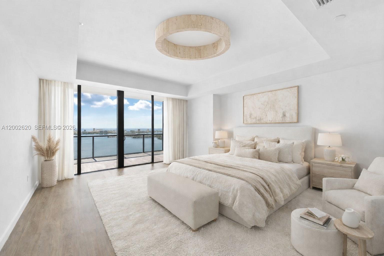 Located on the 48th floor of Elysee, this flow-through residence enjoys panoramic views from sunrise to sunset. Floor-to-ceiling glass and an east-to-west layout create a light-filled interior with open sightlines throughout. The living room, kitchen, primary bedroom and east-facing terrace overlook Biscayne Bay and the Miami Beach skyline, while the west-facing terrace offers expansive sunset and city views. The residence is accessed via a private elevator and foyer and features 4 bedrooms, 4.5 bathrooms, and a spacious den. The primary suite includes floor-to-ceiling windows, a spa-style bathroom with a large soaking tub, custom marble shower, and an oversized walk-in closet by California Closets. The kitchen is thoughtfully designed for both daily use and entertaining, featuring Italkraft cabinetry, Wolf and Sub-Zero appliances, and a gas cooktop. Well-proportioned living spaces and refined finishes provide comfort, functionality, and flexibility. Building amenities include sunrise and sunset pools, a state-of-the-art fitness center, a private owner’s lounge on the 30th floor, a children’s playroom, valet service, and 24-hour concierge. Offering privacy, generous living space, and full-service amenities, this residence is ideally positioned in one of Edgewater’s premier waterfront buildings.
