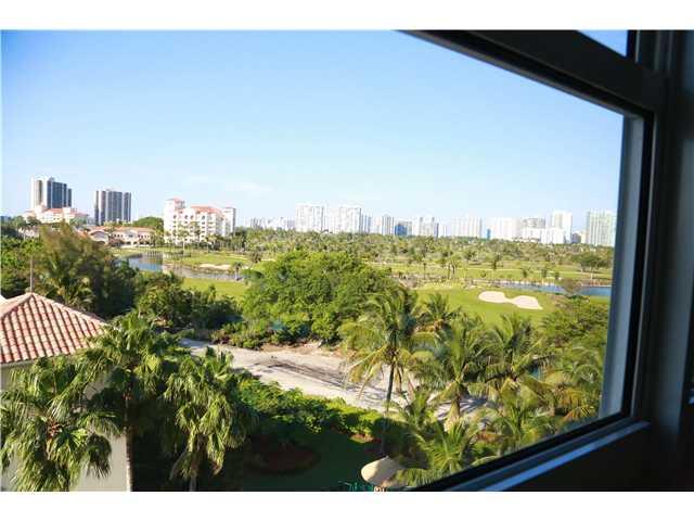 Magnificent opportunity to purchase one of the nicestly upgraded units in the bldg. All imported hardwood floors, superbly equipped kitchen w/granite countertops, every detail carefully designed, Luxurious modern furnture. One of the best buildings in Av entura w/ great amenities, very close to Mall, houses of worship, on Golf Course, close to the beach. Nice balcony view on the greens and lagoons of Golf Course.