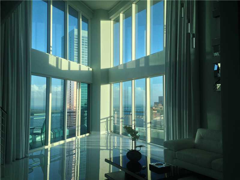 JUST REDUCED! Amazing sky residence on 40th floor overlooking Brickell area and the bay with unobstructed views! Three bedrooms, three bathrooms and 1/with almost 2800 sqft, wrap around balconies on first floor and each bedroom has its private terrace on the second floor. Enjoy exclusive access to the roof top amenities with over ten foot ceilings. modern Italian furniture sold separately. OWNER INTERESTED IN SELLING!