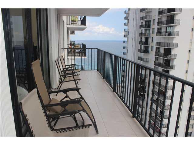 Beautiful, brite & spacious 2bed/2bath condo located on Hollywood beach. This unit has an oversized balcony with beautiful sunset/sunrize views of the intercoastal and ocean. Renovated kitchen with granite countertops,wood cabinets and stainless steel a ppliances. Floor to ceiling porcelain tile in the bathrooms. New doors, organized walking closets. This condo complex has 2 heated pools,2 gyms and saunas,covered parking,valet a restaurant & more, Walking distance to the Boardwalk and Diplomat Hotel.