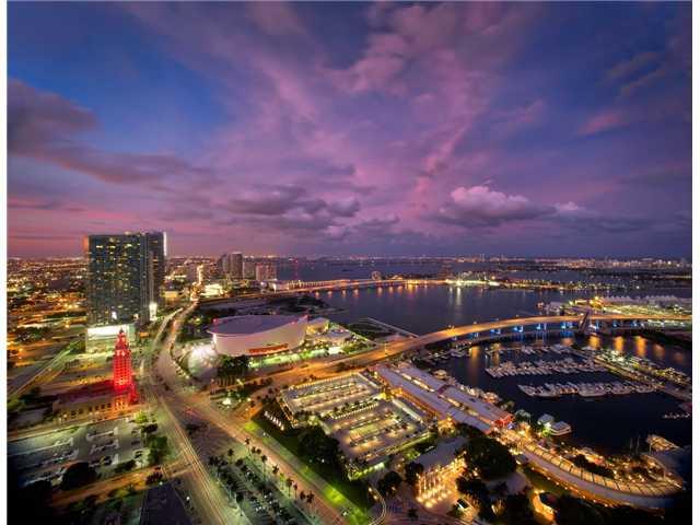 VIZCAYNE, SOPHISTICATED URBAN CITY LIVING SITUATED IN THE HEART OF DOWNTOWN MIAMI WITH SWEEPING VIEWS OF THE CITY AND BISCAYNE BAY. Fully upgraded and interior designed featuring 24 x 24 glass tile flooring throughout. 6" square baseboard. Window treatm ents throughout. Custom handrail and staircase. Fully automated system that controls lighting, window treatments and thermostat from iPod. Custom paint. The most amazing views in all of Miami!!!