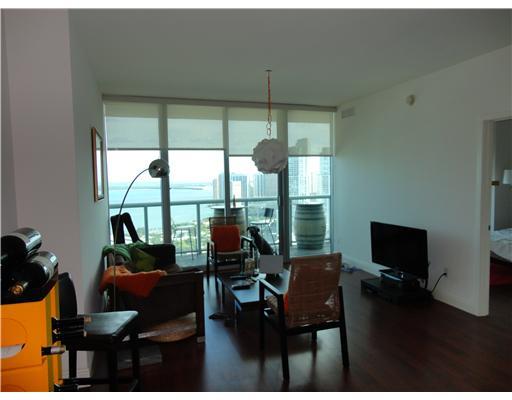 This amazing corner unit offers wrap around floor to ceiling glass windows w/spectacular views of Biscayne Bay & the Downtown Miami skyline. Only one other floor plan in the building offers an additional balcony in the second bedroom. Unit is finished an d tenant occupied. Perfect for investor/cash flow positive. Building offers 24hr security, concierge, morning pool and infinity afternoon pool for sun all day. Comes with tandem parking for 2 cars $10,000 more