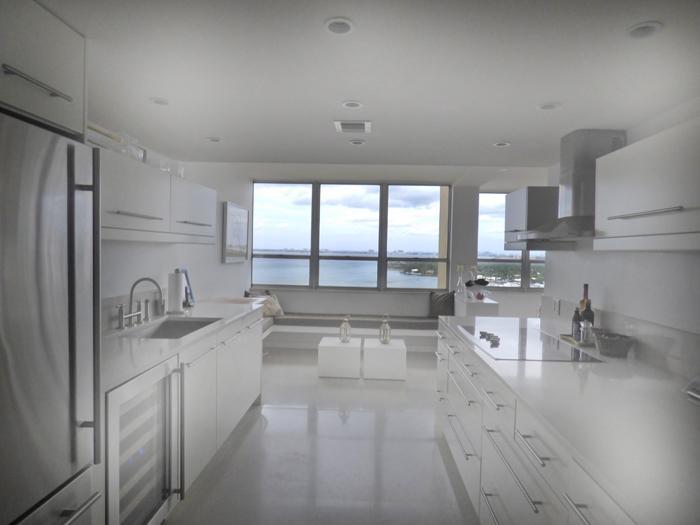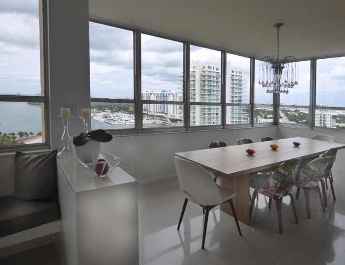 Modern, sleek, chic corner. Fabulous panoramic views of Bay, and South Beach, both day and night from all rooms and large balcony. This unit was totally renovated-- semi-open kitchen with Jennair and Bosch appliances, quartz counters and built-in seating area. Other features include: Terrazzo floors, spacious bedrooms, beautiful marble master bath w/double sinks, soaking tub and shower, large closets. Costa Brava is a Full-service building: concierge, valet, cov. parking