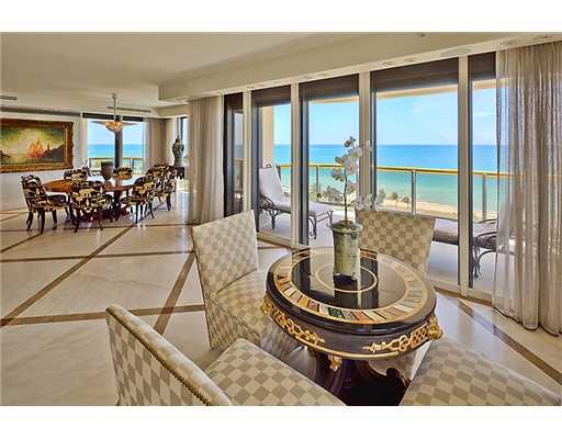 Spacious & elegant waterfront luxury. Featured in FL Design Magazine. Interior by famed designer Juan Montoya.3 bed/4 bath corner condo with most desired SE direct ocean views. Lavishly appointed and fully furnished. Rare and antique artwork and furnitur e. Lalique chandelier, 18th century French fountain, Snaidero kitchen, marble flooring, feather-hand painted walls. Master suite with sitting area, his/her baths, walk-in closets. 3 balconies. Countless upgrades.