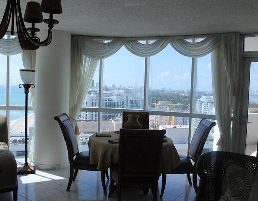 Two balcony allow you to enjoy a sunrise breakfast and a sunset dinner. A glass rotunda living area with floor to ceiling windows makes a spectacular residence or second home. Full service building offers everything you need to enjoy Miami Beach living a t it's finest. Walk to shops and restaurants. SHORT SALE ONE LOAN.