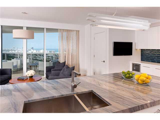 Immaculately renovated flow through penthouse offers nearly 360 degree panoramic views of the ocean, bay, South Beach, Fisher Island and Miami skyline from 2 oversized private terraces. Designer finishes include imported Italian hand crafted oak flooring, Blue Macauba quartzite island, custom teak cabinetry, and custom Bergamo fabrics. This 3 bedroom masterpiece boasts a private elevator foyer and gourmet kitchen. Complete with state of the art Creston for audio, video and solar shade control.