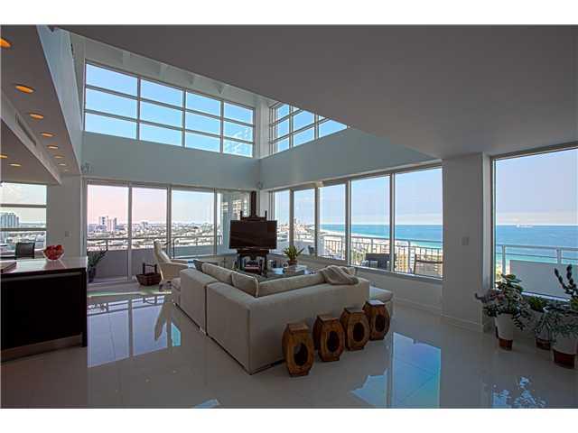 UNIT IS OFFERED TURN KEY, DESIGNER DECORATED AND FURNISHED. One of a kind South Beach DUPLEX PENTHOUSE! This extraordinary 3 bedroom 3 bath 2,779 sq ft "Residence in the Sky" features 20 ft. ceilings and open loft like space. An additional 600 sq ft of outdoor space from 3 terraces. Gourmet kitchen with stainless steel Miele, Sub Zero and Viking appliances. Magnificent open views of Atlantic Ocean, South Beach & Gov't Cut. Full Service Building with 2 tennis courts, pool and fitness center. Must see!