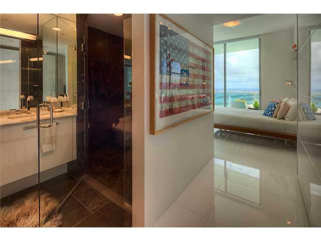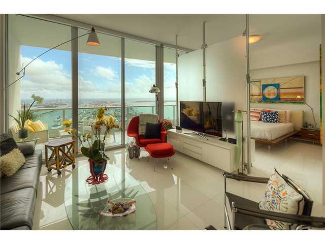 Jaw dropping views await you from this 58th floor oversized 1 BD / 2 BA plus den LOFT w/ 11 foot high ceiling. Floating glass wall separates living room from master suite which allowing you to take advantage of the incredible Miami sunrises. Finished to p erfection with white glass floors, 2 pools , theater room valet and more. This is a one of a kind unit at 900 Biscayne.