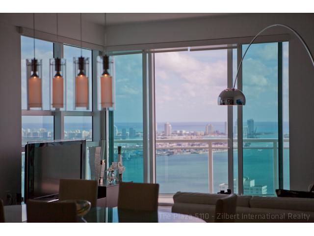 A must see corner unit with east exposure in the most desirable line at the Plaza. Unit 5110 features 1395 SQFT 2 bed, 2.5 bath. Enjoy impressive clear views of Biscayne Bay, Key Biscayne, South Beach, the Ocean and beautiful Miami Skyline. Open kitchen, granite counter tops, GE Monogram stainless steel appliances. Walk-in closets for both bedrooms. Walk to work, metro mover, Mary Brickell Village, local restaurants and café's. Call listing agent for showing and information.