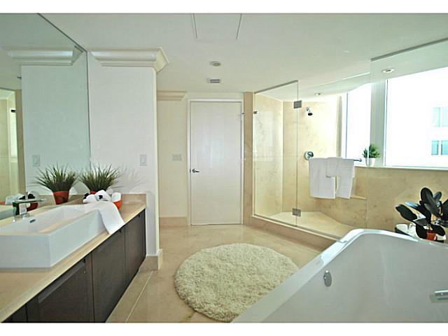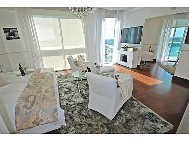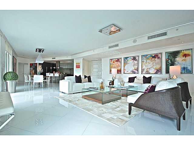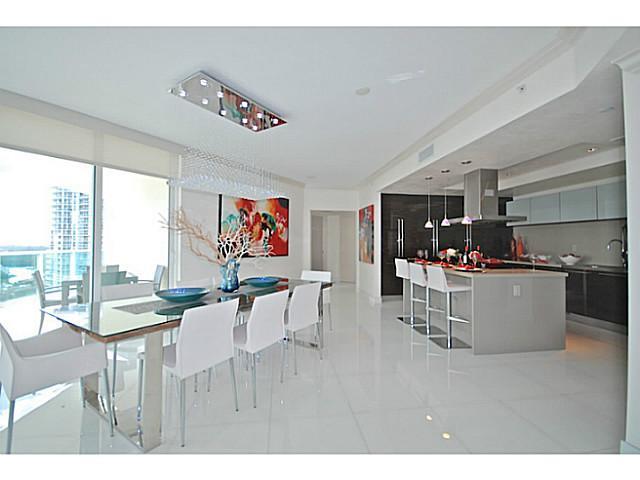 The Jewel of St Tropez, Venetian Plaster, Furnished by ArteCity Design, facing South East towards Intracoastal this 3,813 square foot space has a uniquely spacious living area, full length hurricane impact patio sliders opening along the unit, built in sp acious closets, top end finishes. This is a model unit and price includes all finishes and furniture. Low maintenance fee includes Turnberry Beach Club membership.