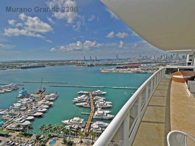 Rarely available 08 line on high floor at Murano Grande at Portofino. Extraordinary 180 degree views of Fisher Island, cruise ships, Atlantic Ocean & South Beach, Biscayne Bay & downtown Miami skyline, this 2 bed/2.5 bath split plan features marble floors throughout, Sub Zero & Miele appliances, built ins, a very generous balcony & many upgrades. Located on South of Fifth area, Murano Grande at Portofino is a five star building, offering great amenities. Easy to show, call LA today.