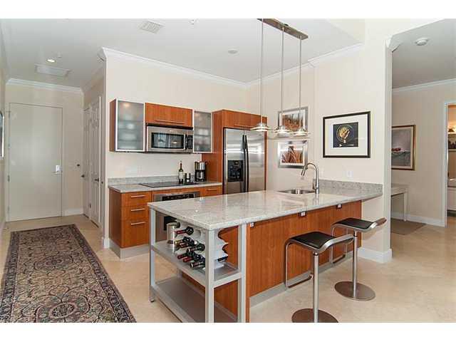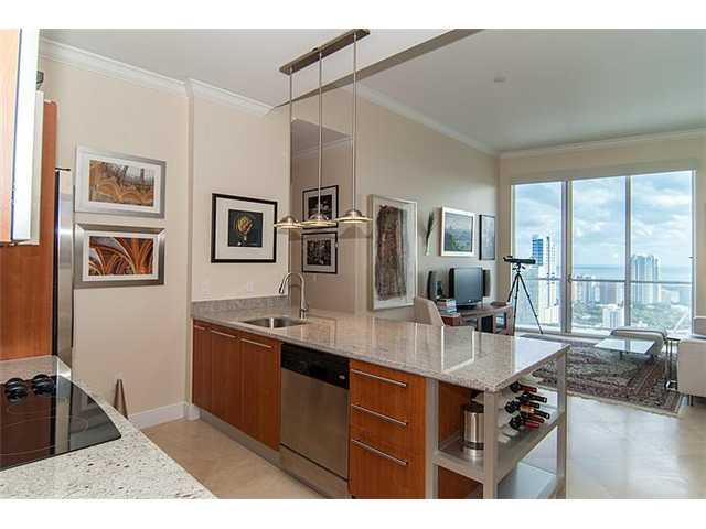 Beautiful 1Be + Den/1Ba Penthouse o/t 44th floor. Excellently finished. Italian Snaidero cabinets in kitchen and bath, Premium grade travertine floors throughout, Baseboard and crown moldings, Closet shelving in bedroom, linen and hall closets, 12 Ft Ceil ings and Floor-to-Ceiling Sliding Glass Doors leading to a spacious balcony ,Amazing views! Designated parking space included.
