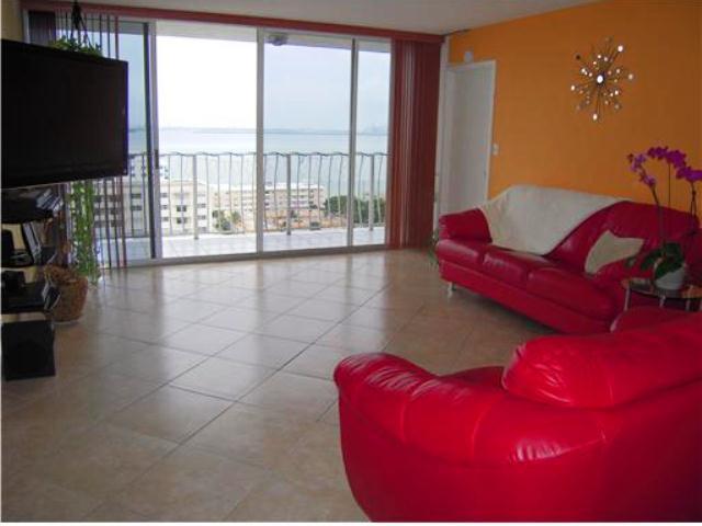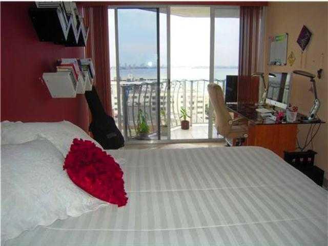Enjoy this spacious 2 Bedroom/2 Bathroom property featuring 180 degree direct Bay and Ocean views and Miami Downtown skyline. Tile floors throughout, stainless steel appliances, split bedroom plan. Cash Offers only please.
