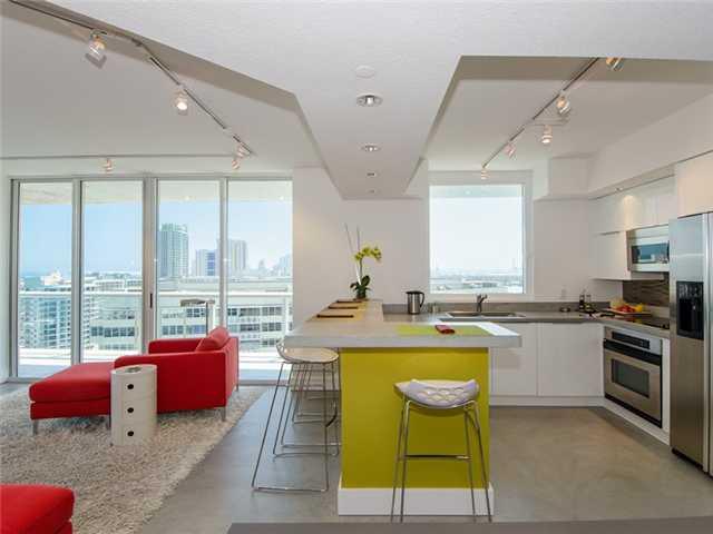 Beautifully completely upgraded turnkey unit. Just 2 blocks from Lincoln Rd & steps away from the famed Standard Hotel & resort..Walk to all of the hottest spots in town! Enjoy breathtaking panoramic views of South Beach, Biscayne Bay & Ocean. An immens e wrap terrace makes this unit feel HUGE! This boutique luxury building has a full time conceirge,security, tennis court, pool, and gym. Pets OK