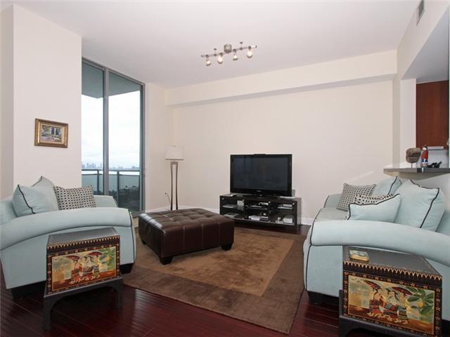 Fantastic 1,753 sqft. 2/2.5 corner unit with separate den and wrap around balcony. Stunning ocean and city views. Beautiful master bath w/ Jacuzzi tub and shower. Gourmet kitchen with SS appliances. High ceilings, wood, floors, 2 assigned parking spaces, storage room. Infinity edge pool, fitness center and theatre room.