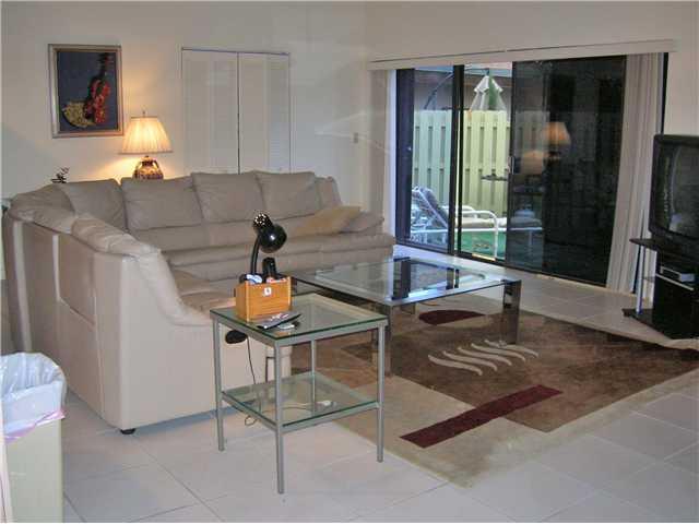 Updated & open; '05 gourmet Euro kitch-wood cabs, granite countrs-backsplash, under-cab lites, slider shelves/drawers; large lite open liv.rm/dr-volume ceilng. Mstr bth: newer shower&vanity; neutral tile,; crpt in bdrms; abundant closets/storage; split bd rms, skylites w/vaulted wood ceilngs for volume/space; fullsize w/d. Private fenced patio, hurr.shuttrs, lovely landscaping. Wonderful community - dock avail, tennis, pool++ Near Beach, Gulfstream, shopping, dining, airports. As-is; inspections welcome.