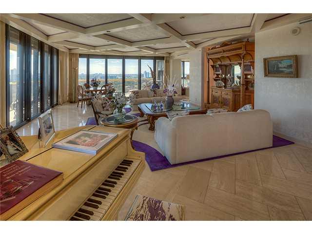 Enjoy spectacular views of the ocean, wide Intracoastal Bay and city skyline from this south west corner unit wrapped by 700 sq ft of terraces. 2 bed/ 4.5 baths, opulent dining and living room, built in bar, media room, maid's quarter & utility room. Grea t size master bedroom with Her & His baths and closets. 2 new AC units. Cabana & furniture available for separate purchase. Cabana is offered at $185,000. Full amenities, beach front building across from Bal Harbour shops and restaurants.