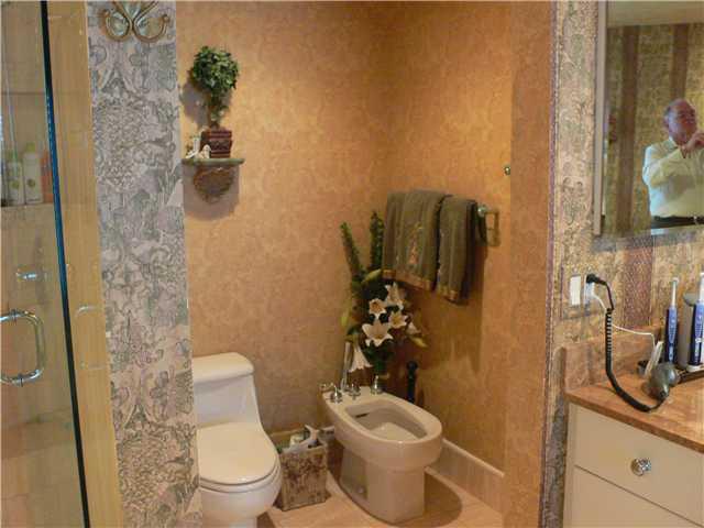 Fabulous NE corner 2 bed+den/3rd bedrm, 3.5 baths. Best line in the Best bldg at The Point. Private elevator w/ double foyer. Crema marfil marble flrs, carpet in bedrooms. Surround sound in the living rm, built in bar, electric shades in all rms, great kitchen with granite tops, built-in double oven w/microwave. 9 ft. ceilings w/ crown molding. Full laundry rm with sink. Built in custom closets thru-out. All marble baths. Wrap around terrace w/ view of the intercoastal and ocean. Hurricane shutters.