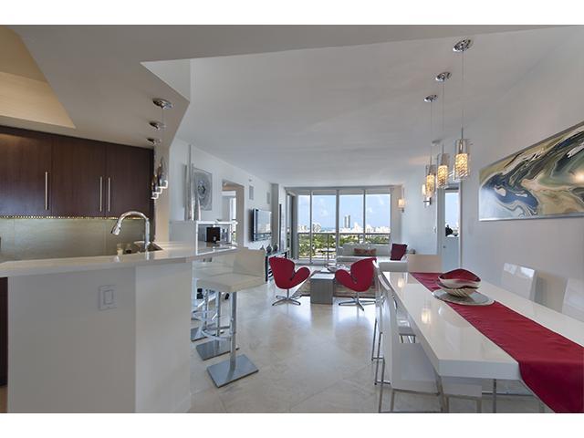 Beautifully renovated 2/2 at Sunset Harbour South complete with 2 assigned & deeded parking spaces! Just bring your toothbrush! Newly designed bathrooms provide luxury and functionality with dual sinks in the master and large walk-in showers. New kitch en boasts under cabinet lighting, large sink, new stainless steel appliances and wine cooler. Wood flooring in bedrooms. Double balcony accessible from living areas and bedrooms. Built-in sound system in living area. Frosted glass doors throughout.
