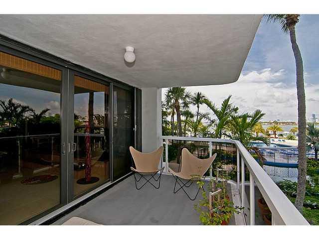 Unusual,Stunning,Provocative,& more in this superbly designed apartment w/a spectacular view even though it's on the fourth floor.Views to the cruise ships & Miami sky line from two balconies.2nd bdrm wall has been removed to create loft effect but can be easily restored.Eat in kitchen w/bar opening to living room.High impact sliding doors plus hurricane shutters are included.Enjoy quiet island living(just ten minute walk to Lincoln Rd).Full service building w/ pool,BBQ island & restaurant.