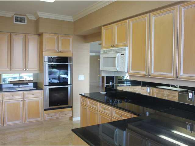 SE EXPOSURE with dual terrace views of the ocean & city. Gourmet kitchen, 3rd bedroom converted into a large open great room. Half bath converted into an office.SEMI- PRIVATE ELEVATOR. Marble floors in all living areas and bamboo wood floors in bedrooms. 2 GARAGE PARKING SPACES. Resort-like complex w tennis courts,guardhouse, poolside cafe ,concierge,valet,private beach pavilion w/ cabanas,tiki huts, bbq area and beach attendant.2 PETS OK.Dog walking area. Most luxurious complex. Private beach access.