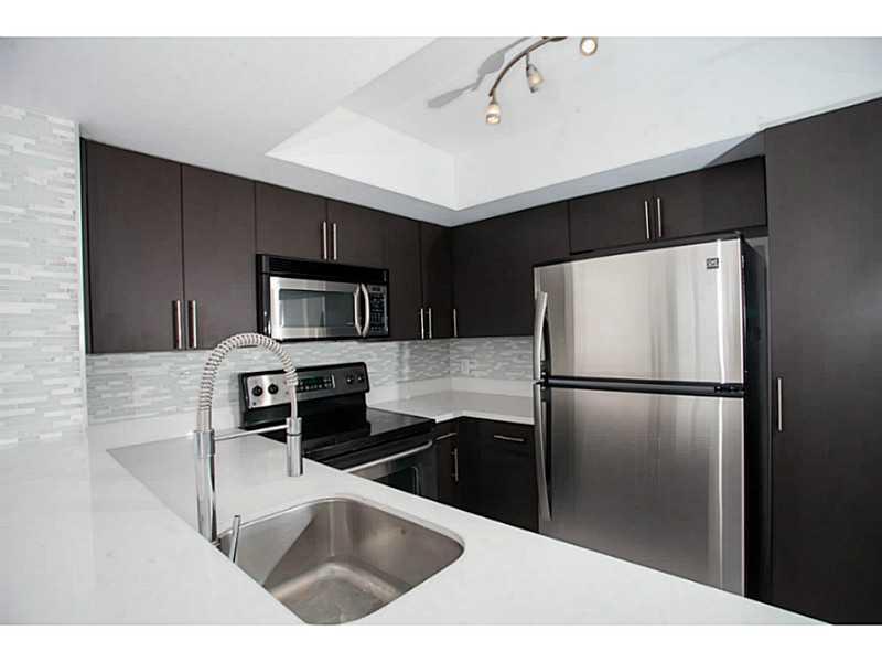 Corporate Owned! Live it up in the hottest totally modern 1/1.5 @ Sunset Harbour South w/ Awesome views to the South Beach Skyline+Ocean! Unit has new super modern kitchen w/ white quartz countertops, black cabinetry, stainless steel appliances + mosaic b acksplash! Unit has rare European white gloss flooring throughout! Bathrooms all remodeled w/ modern vanities w/ quartz countertops + bowl sinks + white glass floors! Unit has new washer+dryer!Freshly painted w/ new lighting + outdoor flooring in balcony!