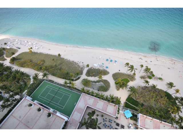 Best opportunity in the building! Developer's own penthouse. SE/NE corner w/magnificent ocean and city view. Wraparound balcony with glass doors. Large kitchen with dining and breakfast rooms. Enormous master suite with walk-in closets. Private elevator a nd foyer, automated hurricane shutters and shades. Custom built cabinets, doors and marble floors. Resort amenities including pool, tennis, gym, private restaurant, valet, full concierge, 24 hour security. One-of-a-kind property.