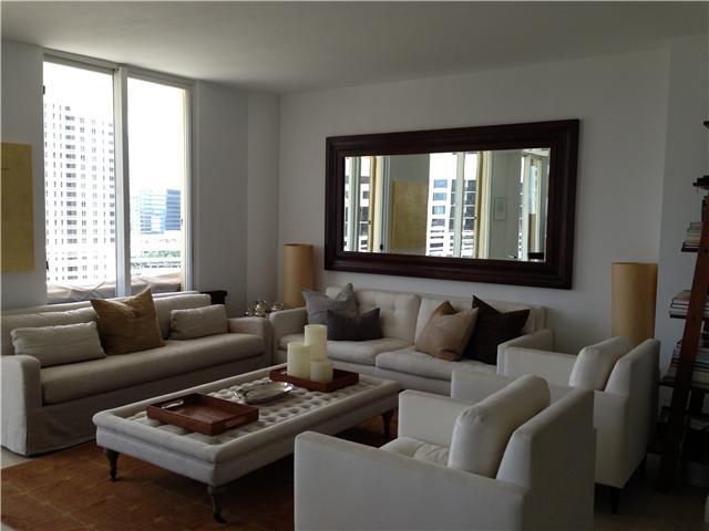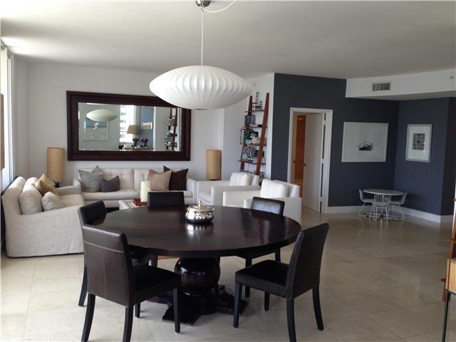 Excellent views, large living room, family, 3 bedrooms, 3 bath, 2 parking spaces, huge balcony. Rare opportunity to own one of the most desirable floor plans in Brickell Key.