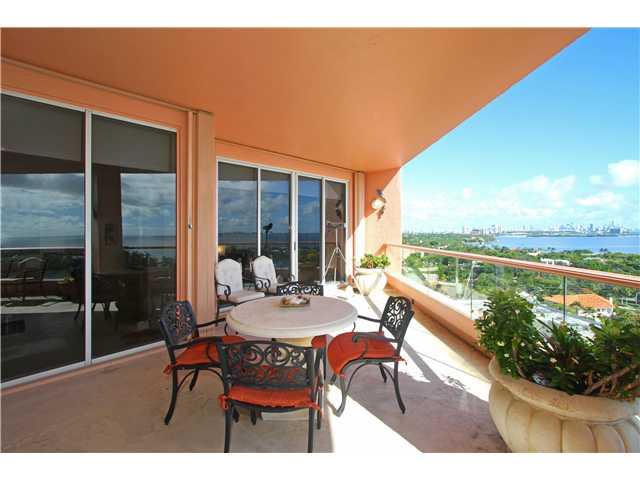This beautifully appointed, seldom available "E" line on a high flr gives one breathtaking views of Biscayne Bay, Atlantic Ocean, Key Biscayne & downtown Miami from the minute one steps off the private elevator & into the expansive living & dining rms, on into the breakfast rm & kitchen. A balcony stretches out from all these rooms & creates large areas for dining & entertaining. Den converts to the 3rd bedroom. This very secure complex is well maintained & a favorite of many Miamians.