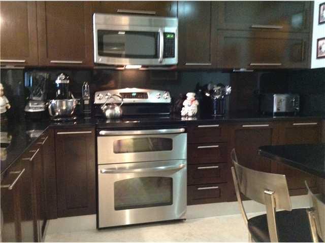 Stunning water views with magnificent sunsets from master bedroom,living room,large formal dining room & kitchen.Triple glass sliding door to oversized coral keystone tiled balcony from both master & living area for full dining & entertaining.Black absolu te granite kitchen,contemporary Italian dark wood kitchen, baseboards & doors.New high end stainless steel kitchen appliances. White quartz counters & natural stone from floor to ceiling in bathrooms.Marble floors throughout,bamboo wood floors in bedrooms