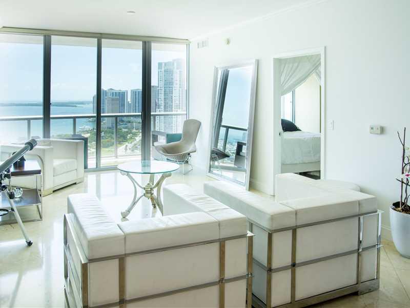 Amazing views from this "05" line. Special floor plan, as it includes a den. Only a few units in the building offer this extra space. Great opportunity to live in this thriving neighborhood, steps away from Museum Park and American Airlines Arena. Marble floors throughout. Tenant occupied on a month to month basis, easy to show and ready for a new owner!