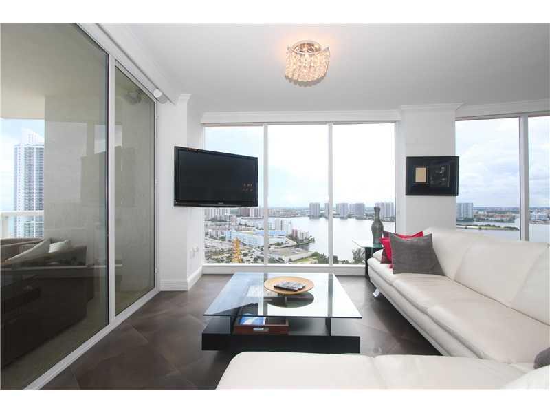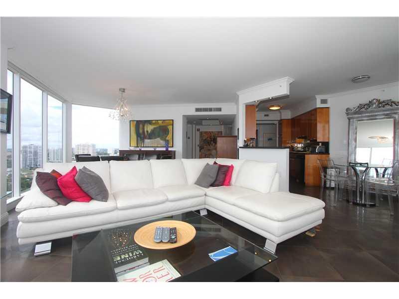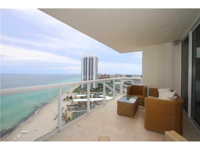 Beautiful 2BR plus Den/2.5 bath corner unit with pricate elevator, panoramic direct ocean views with 2 large balconies. Floor to ceiling windows with Hunter Doughlas window treatments throughtout, porcelain flooring in the living room, wood in bedrooms. Closets beautifully done. Modern kitchen, designer upgrades, resort style amenities include heated pool, gym, sauna, tennis ct, lounge room. 5 mins away from Aventura and Bal Harbor.