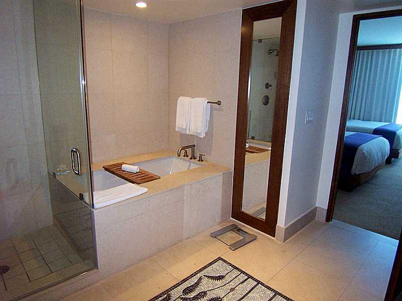 CASH OFFERS ONLY. Wonderful corner and spacious unit. Fully-furnished "turn-key" 1BR hotel suite w/kitchen, bedroom with 2 beds, spacious bathroom. NW corner with city/sunset view. 70,000 sf fitness/spa, 4 pools, salon, concierge, gourmet restaurant, pool side cafe, bar, 24hr security, valet, boutique, wellness staff, jog/bike beach path along beach. Owner's closet. Unit in hotel rental program and can only be shown when not rented to a guest. Door #601 / Deed #616. See photos.