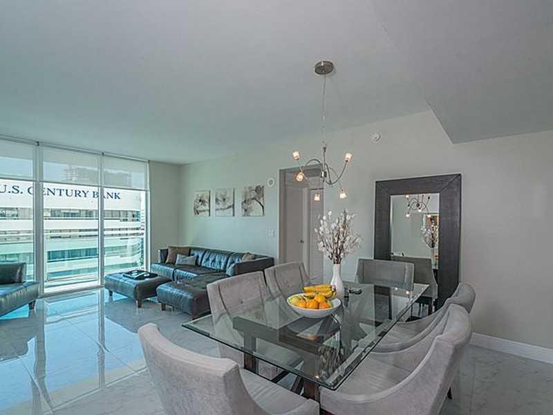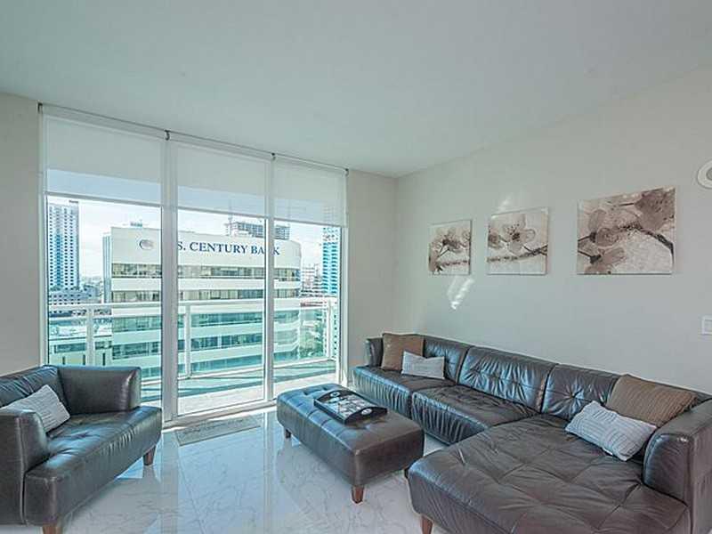 The perfect urban setting with city views. Beautiful 24 X 24 porcelain tiles throughout. Open kitchen with GE profile SS appliances, granite counter tops and custom back splash. Convenient split floor plan with spacious walk in closets. Building located i n the heart of the financial district, one block from Mary Brickell Village and anticipated Brickell City Centre. Walk to area restaurants, easy access to people mover and Metrorail. Full service building with amenities galore.