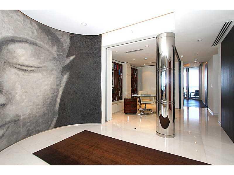 Spectacularly finished, contemporary double unit w/ direct ocean & city views. Imported white Himalayan Marble throughout, Media room, wet bar, top-of-the-line kitchen, 2 Sub-Zero refrigerators. Double Master Suites w/direct ocean views, walk-in closets, large bathrooms, large terraces. Convertible library to bedroom. Lutron systems, 4 parking spots, private elevator. Amenities: fitness center, spa, party room, valet, movie theater, & beach service. Unit comes w/ 2 Storage Units. Furniture negotiable!
