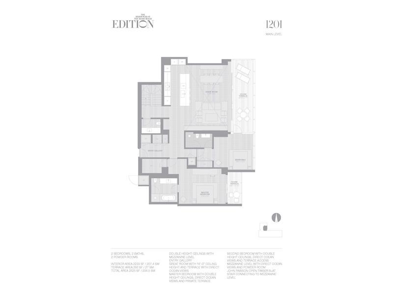 Ian Schrager presents this spectacular fully finished 2 bedroom/3.5 bath ocean-front duplex apartment designed by John Pawson. This limited one-of-a-kind residence has 16-foot ceilings and is located between the ocean and the bay with breathtaking views o f each. Enjoy 24-hour five-star world class services, poolside cabanas, resident-only beachfront and more.