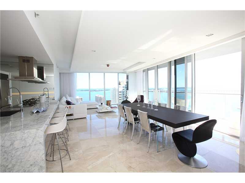 Stunning turnkey corner unit with panoramic views of Biscayne Bay, city lights and Miami Beach. Mooi & Tom Dixon lighting, Viabizzuno light system on entry wall, marble floors, all new doors, electrical shades, Carrara marble kitchen, and shelving in ever y BR ++ 2 PARKING on 4th & 10th floor.
