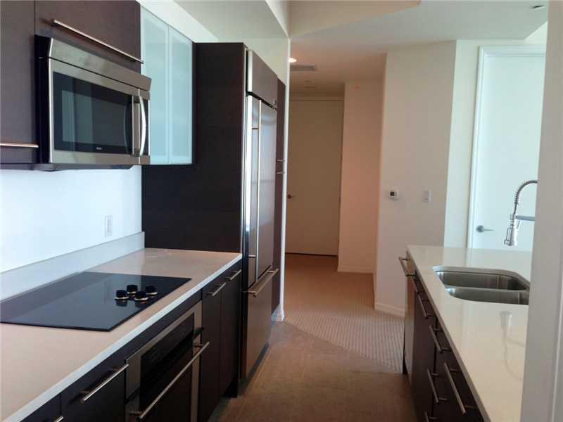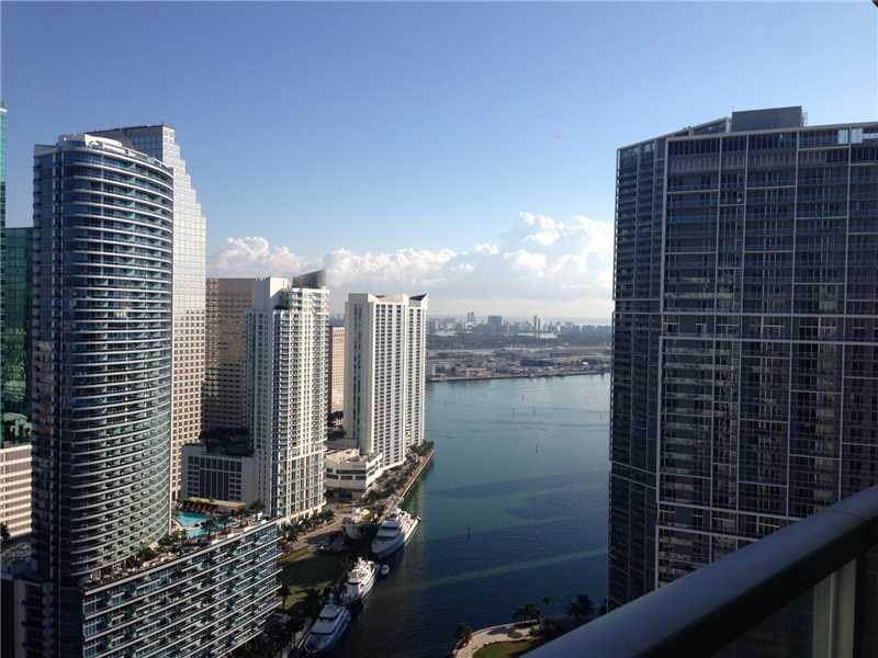 Penthouse with high ceilings, offering panoramic city, river & bay views. 2 bed/2 bath split plan features large kitchen with quartz countertops & stainless steel appliances. Master bath has double vanities with marble tops and Jacuzzi. Located in the hea rt of the financial district and walking distance to the upcoming Brickell City Center. Building amenities include 42nd floor roof top pool offering incredible bay & downtown views. 11th floor infinity pool, gym, spa, theater room, sauna, and wine cellar.