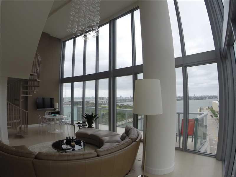 Spectacular & Chic Xtra large 1BR & 1.5 BA 2-story corner loft in exciting bayfront downtown Miami! Full of light, the stunning 18ft glass walls offer panoramic views of the bay, AA Arena, new Museum Park & downtown from all rooms. The loft is beautifully decorated and features: porcelain floors, a 2nd floor master BR overlooking the 2-story living/dining area below, a granite & SS kitchen & ½ bath. The huge master bath has 2 sinks, tub & large shower. Amenities include 2 pools, gym, volleyball & more!