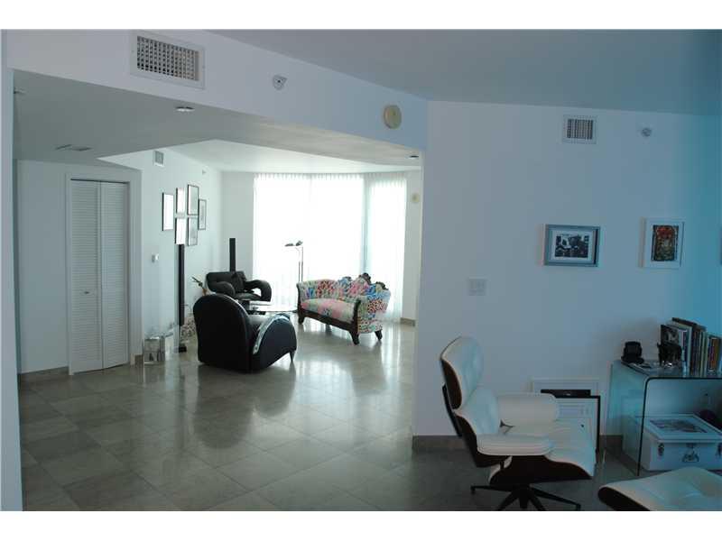 Largest unit in the building formed by joining of 2 adjacent units to create a one-of-a kind space that features Limestone floors, dramatic curved windows, and expansive open space. There are 3 BR and 3 Baths but is currently used as a 1 BR with formal di nning room. Separate balconies off Master BR and Living Room as well as kitchen and dining area. It comes with 2 parking spaces as well as an over sized storage room.