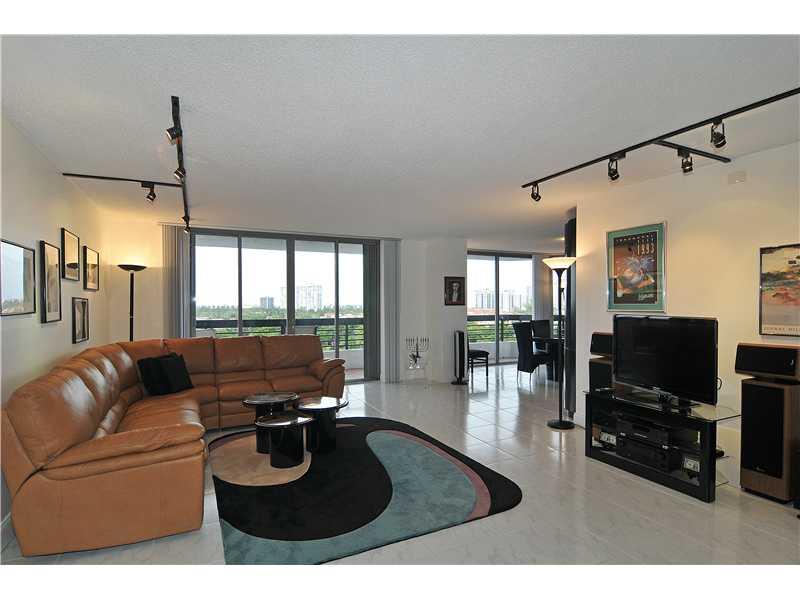 ENJOY OCEAN, MARINA, GOLF COURSE & CITY VIEWS FROM ALL WINDOWS IN SPACIOUS 2 BD/2BA+ LARGE FAMILY OR SEPARATE DINING ROOM AREA(POSSIBLE TO CONVERT TO A 3RD BD)-CORNER UNIT W/ WRAPAROUND BALCONY & 1447 SQ FT OF LIVING AREA. UNIT FEATURES TILED FLOORS IN LI VING, DINING, KITCHEN, UPGRADED KITCHEN W/ STAINLESS STEEL APPLIANCES & DARK WOOD CABINETS, UPGRADED BATHROOMS. ACCORDIAN HURRICANE SHUTTERS IN ALL WINDOWS. ENJOY GYM, SAUNAS, HEATED POOL & SPA-CARD & PARTY ROOM-TENNIS COURTS-MARINA IN GATED COMMUNITY!