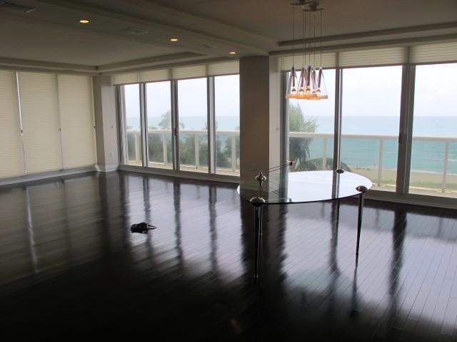 Surfside's best direct oceanfront 3 bdrm 3.5 bath condo, private elevator, custom decorator doors, spectacular rich hardwood flooring through-out. Elegant, clean lines, shows like brand new model apartment. Eat-in kitchen, spacious laundry room, master su ite with plenty of closets, two guest suites, over sized living-dining room... on the ocean @ 95th Street. Breathtaking views, peaceful over sized wrap-a-round terrace. Full amenties. Very rarely does this "A" line come avail.