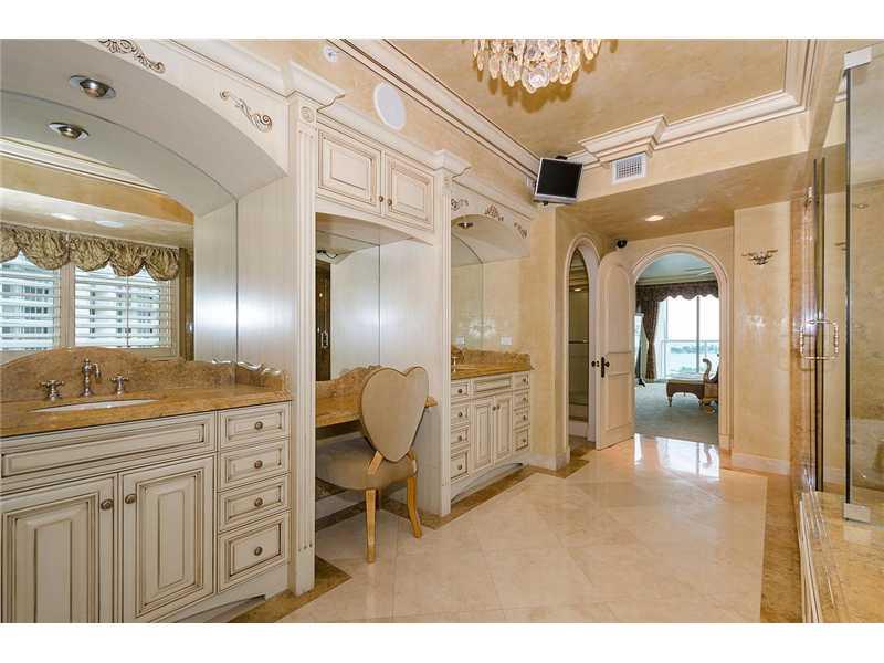 Enter thru priv elev foyer & immediately & throughout see ocean bay & city vistas in every Room. Coveted corner! No expense spared as artisans created work of art. Smart home! Electric windows, media & theater room w/ custom recliner chairs, custom millwo rk, crown molding, new exquisite bathrooms, redesigned custom closets, rounded arches and much more. The finest finishes, Venetian plaster. All marble floors, powder RM added. Palatial lobby, 2 spa, 3 tennis courts, valet 5 star amenities.