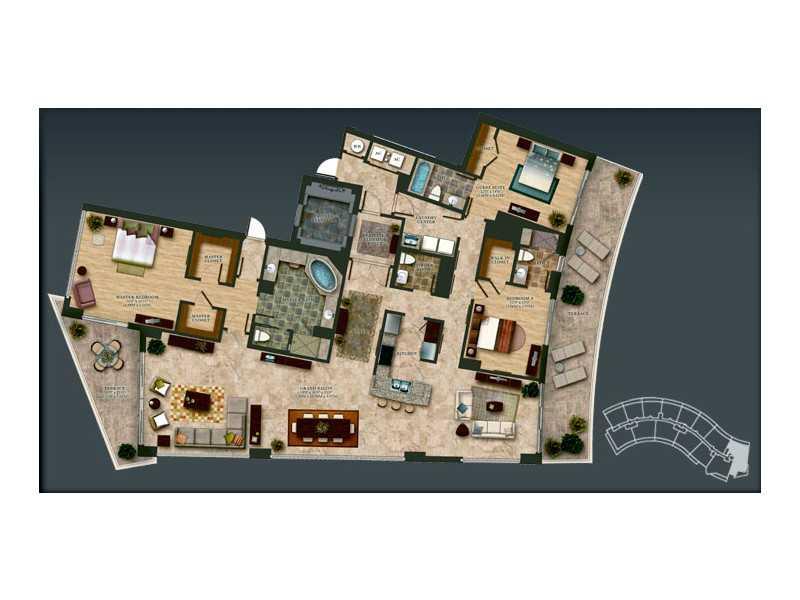 JUST BRING YOUR TOOTHBTUSH ... This is an outstanding unit with a 180 degree view of intracoastal and Ocean. Custom stone cabinets in kitchen, with all Viking appliances, wine cellar. Very unique custom lighting , a living room for sunrise another for su nsets. Condo is designed with stunning vistas from every room. Views are North, east, west -- each bedroom has balcony. Private elevator to personal foyer. Motorized shades included. A must see -- 40,000 sq.ft. of amenities.