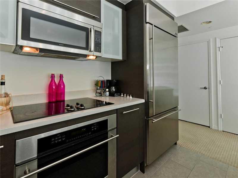 Advanced technology "Smart Building." Like new condo in luxurious Manhattan-style building in the heart of the finanacial district. 500 Brickell offers a magnificent lobby and common areas by world-renowned designer Michael Wolk. 42nd floor rooftop pool, clubroom with warming kitchen, billiards and bay views. Spa and fitness center overlooking the city, valet parking and 24-hr controlled access. One assigned covered parking space.