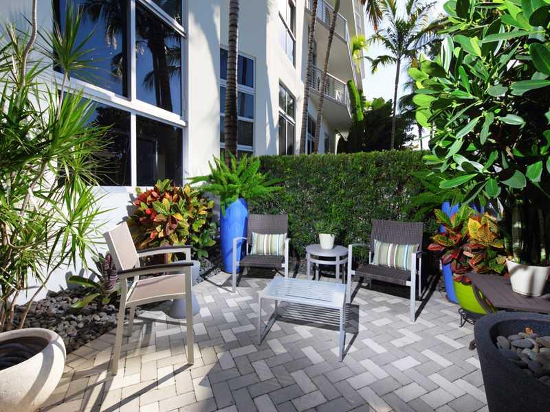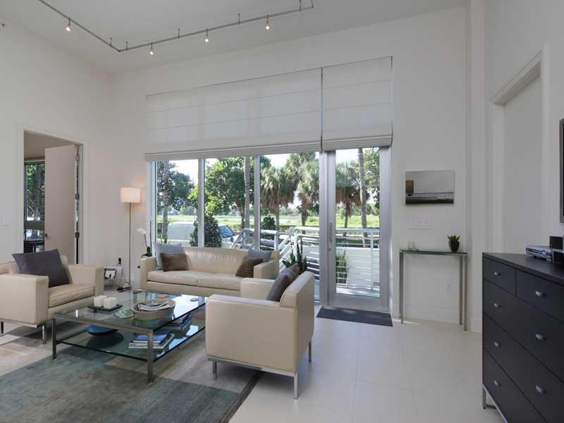 Very rare opportunity to own walk-up "Villa" at Meridian Lofts. Only 1 of 5 units which face MB Golf Course. 13-Ft ceilings with windows overlooking immaculately landscaped 675 Sf private walled patio perfect for outdoor entertaining. Extensive upgrades t hroughout including motorized solar shades, custom cabinetry, Artemide suspension & track lighting-just to name a few. Perfect combination of single-family living paired with full-condo amenities.