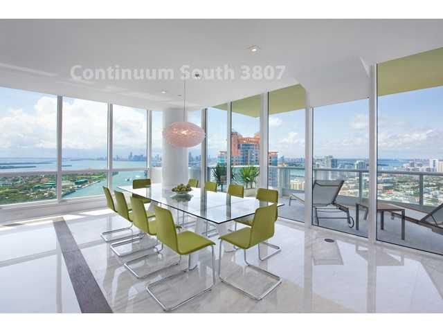 Extraordinary huge 3 bedroom at Continuum South. Rare, brand new, never lived-in unit! Expansive 270 degree views, stunning day/night. Large balcony off the living room, perfect for entertaining. Just finished a no expense spared renovation; unit now feat ures open kitchen by Ornare, custom recessed lighting, custom closets, new designer bathrooms, electric shades/blackouts etc. This designer residence is offered turn key, fully furnished and appointed - move-in ready. Only ocean front bldg south of Fifth.