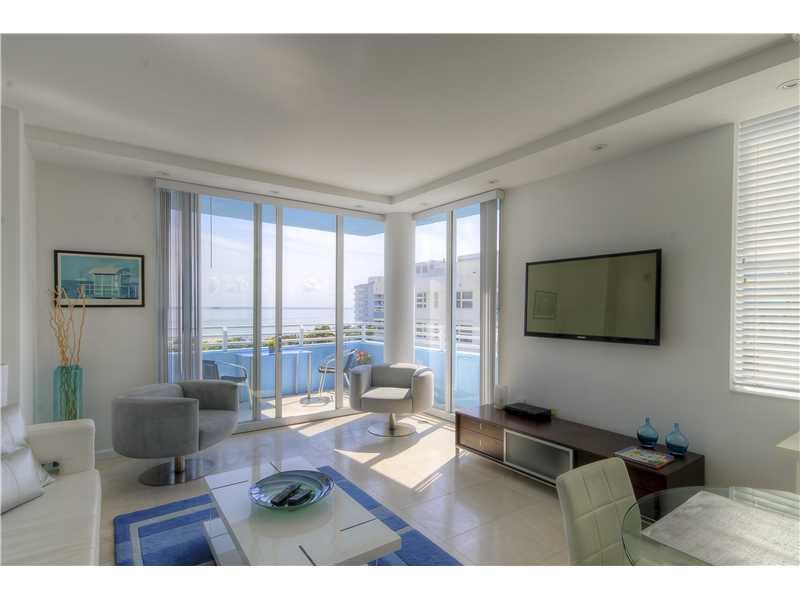 Top floor flow-through corner unit with direct ocean view in South of 5th Boutique 24-unit building designed by Arquitectonica. Close to everything, 1 block from beach! 2Bedrooms/2Bath, 3 balconies w/ 3 exposures: East, South, and West. Open kitchen w/Vik ing stove & stainless steel appliances. Washer & Dryer in unit. Watch ships come and go through the port hole windows. Investor's dream unit. Short term rentals & pets ok. Fully furnished, one assigned parking space included, 24 hour security in lobby.