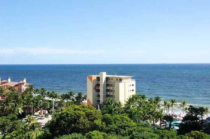Best value at the Vue. Stunning 3/3 corner unit with over 2100 sq. ft. of luxury living & endless ocean & Intracoastal views. Italian marble flooring, crown moldings, custom drapery, granite countertops & SS appliances. Spacious split floor plan features 3 bedroom suites each with its own walk-in closet & balcony. 2 covered parking spots. Amenities include private Beach Club, 2 heated pools, hot tub, billiards room, fitness center, on-site manager, valet & 24-hour security. Motivated owner invites offers.