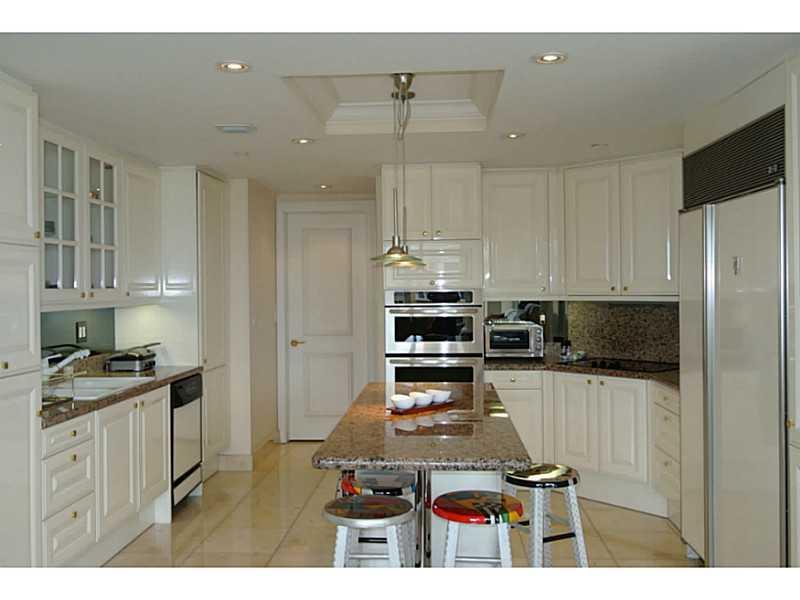 Best unit in complex, exquisitely decorated, marble floors, carpets in bedrooms, unobstructed view of beach and bay. Master suite has a custom made $60,000 walk-in closet and a set up for a home theater with a drop down screen and surround system througho ut the unit. Brand New Poggenpohl kitchen cabinets and top of the line appliances and fixtures. Electric Hunter Douglas shades with remote control in living room, family room and master suite.
